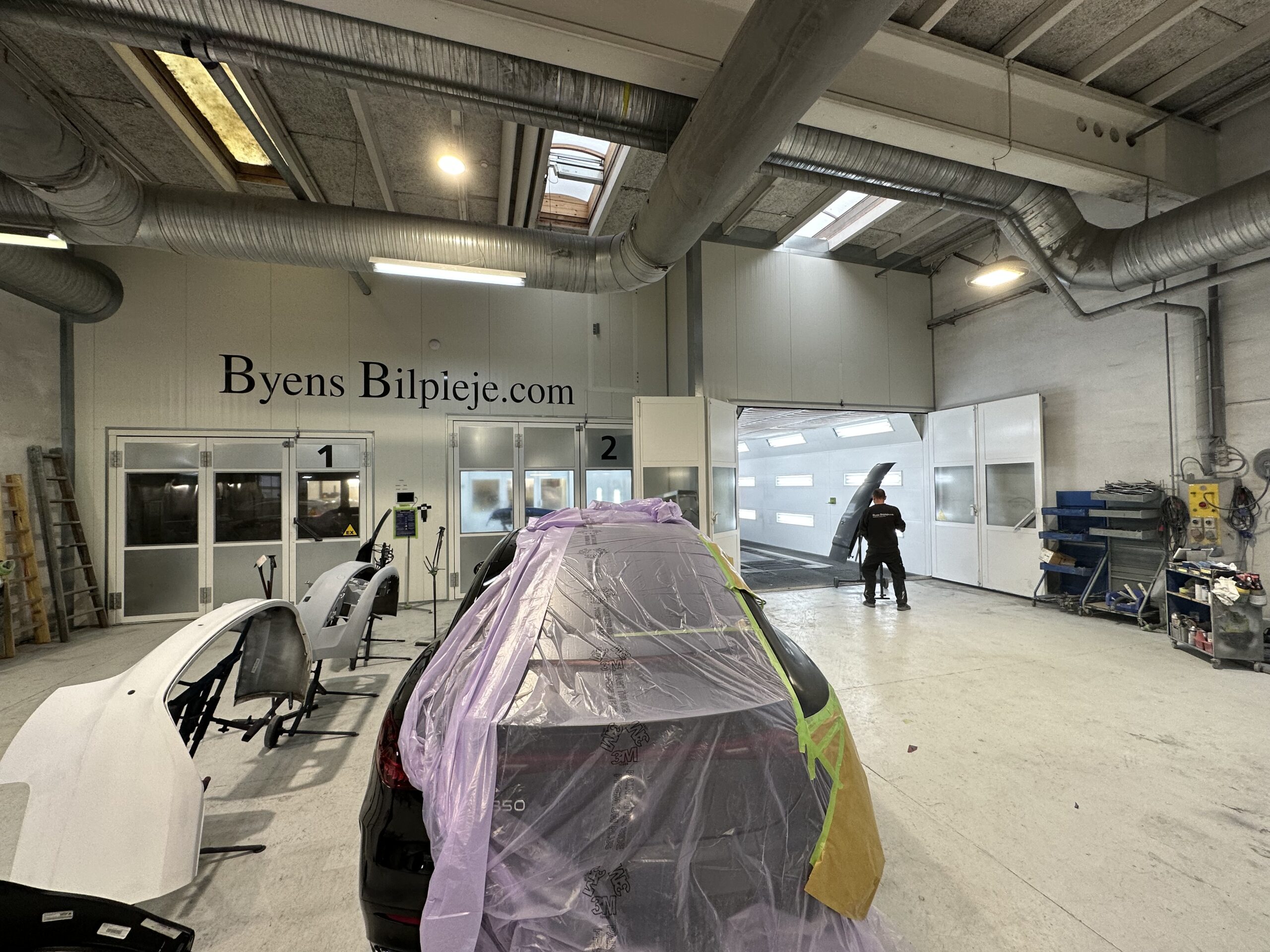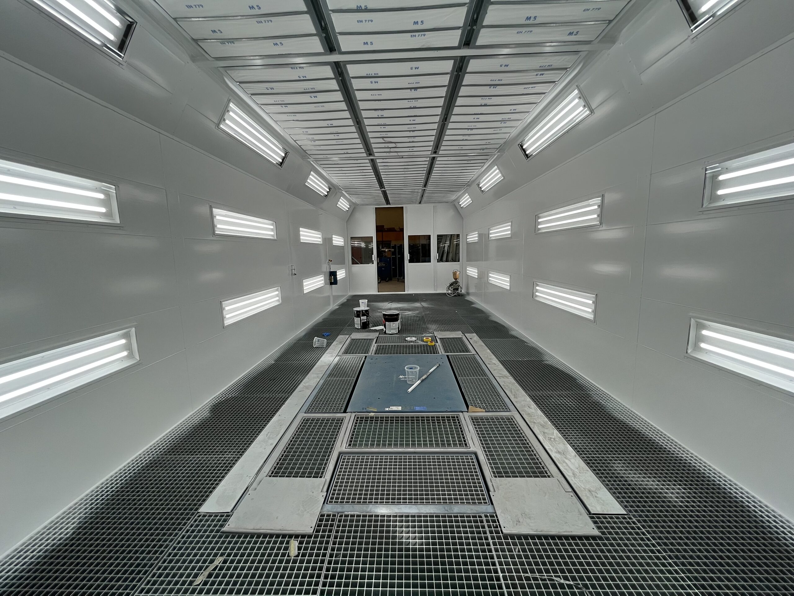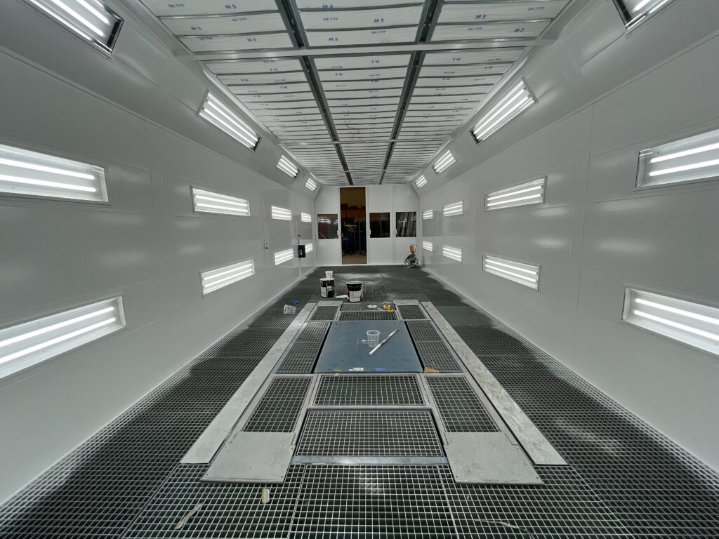 1 new spray booth 11x4m with direct gas and Herkules lift in the floor