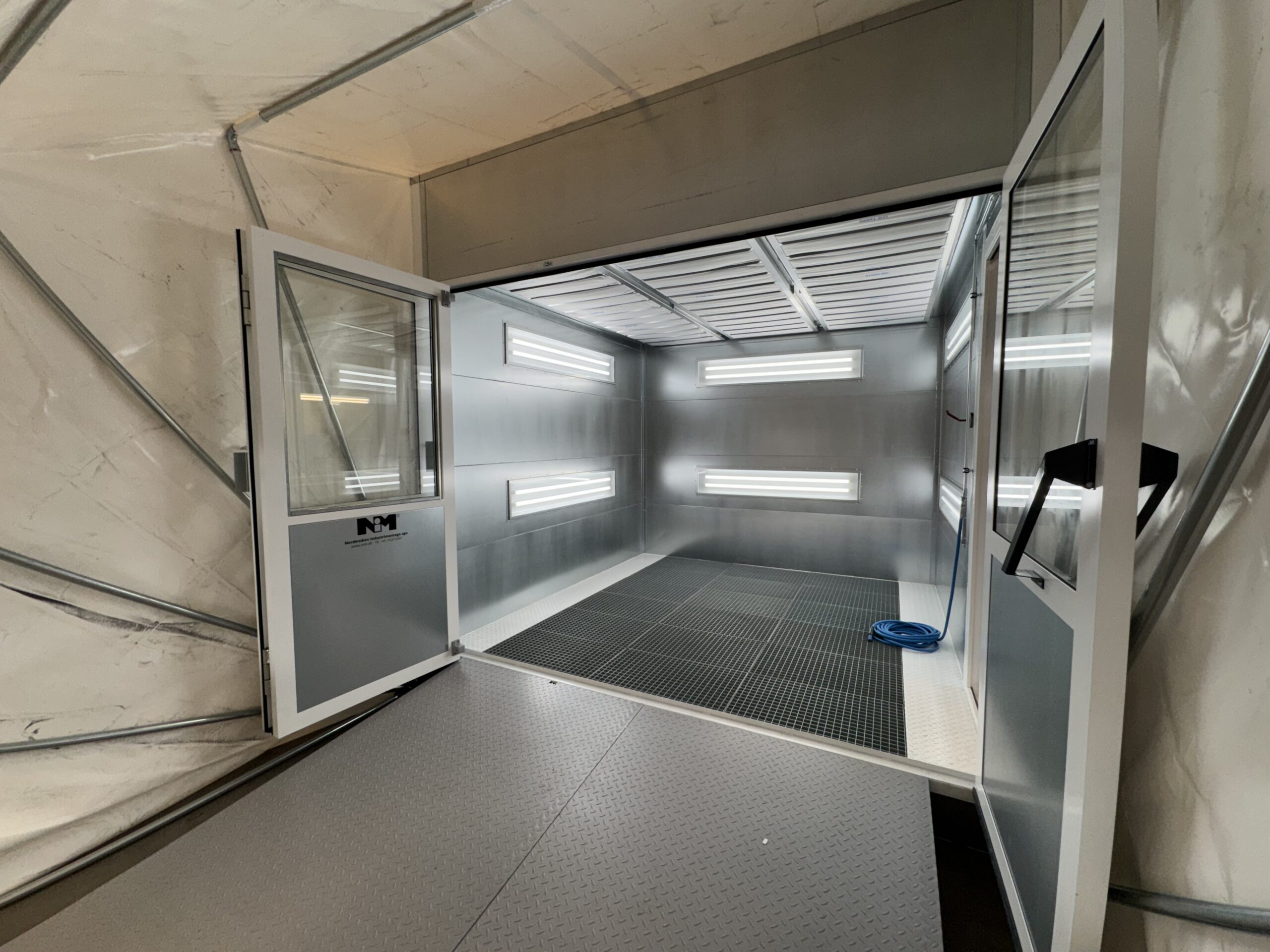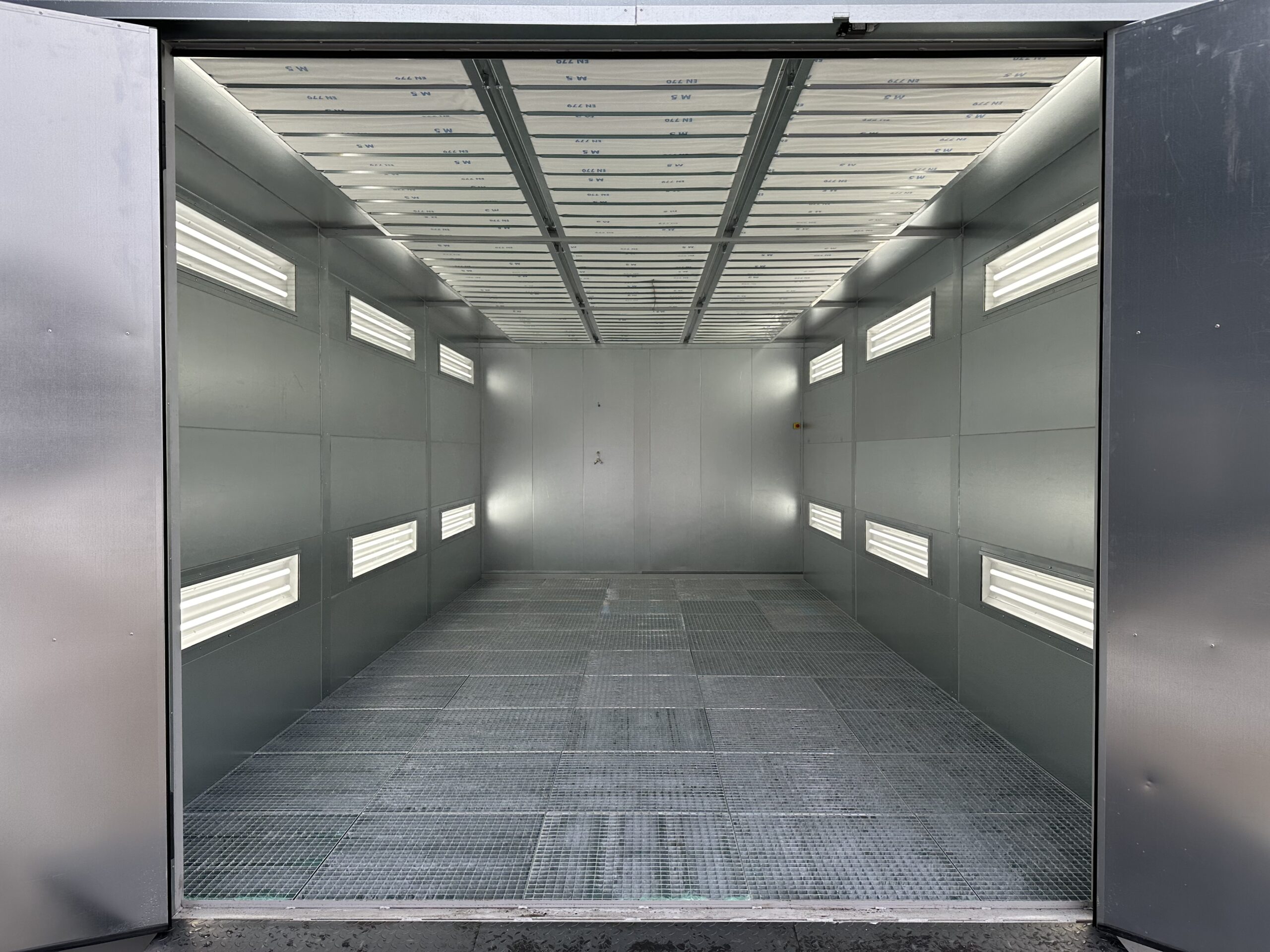Vores store mobilkabine er særdeles velegnet til lakering af større emner som f.eks. biler i autobranchen, men kan bruges til andre industrielle formål.