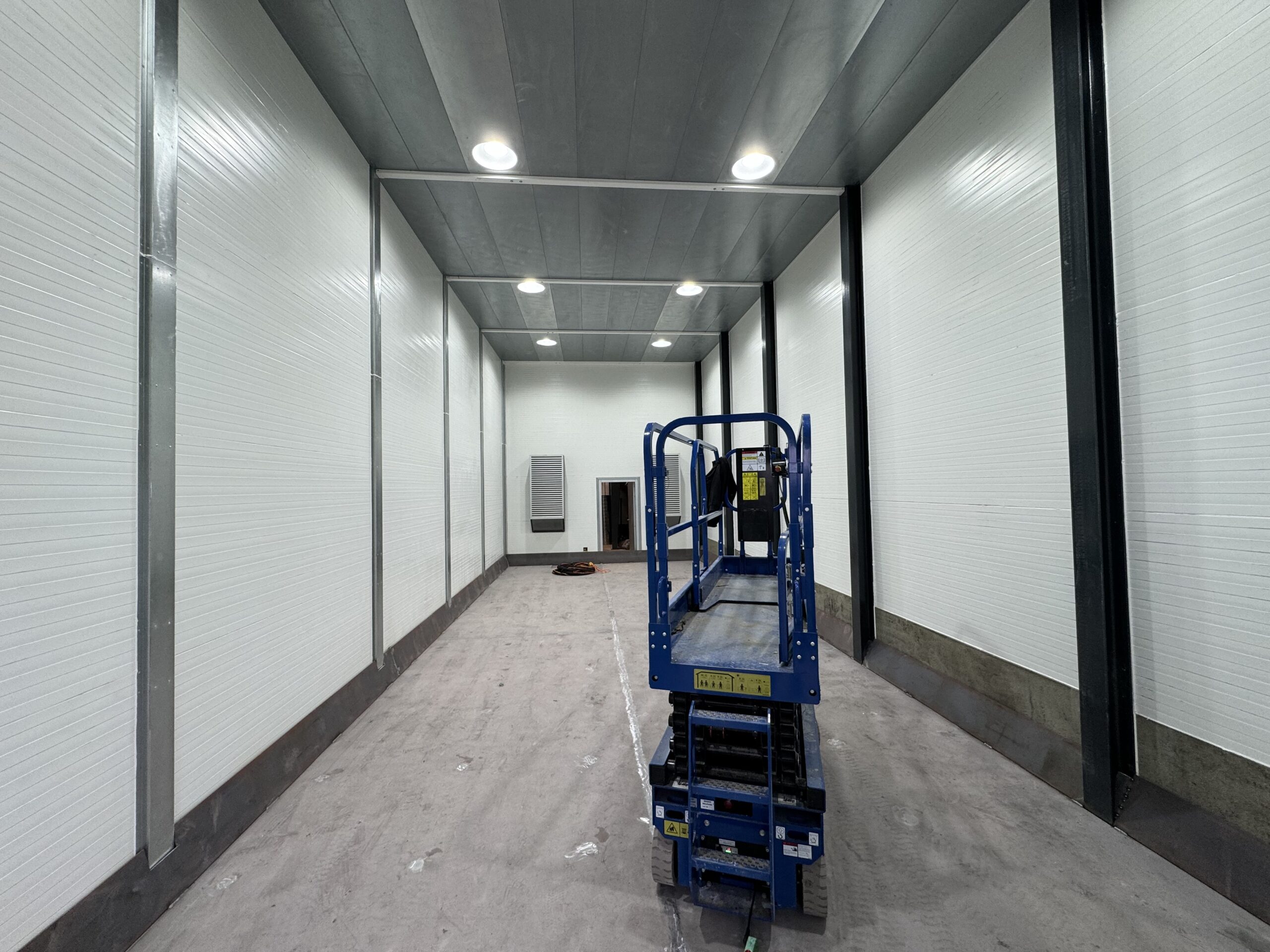 Udover selve kabinen har NIM leveret spær i samarbejde med Græstrup Stål og paneler til udvendige vægge og tag. NIM har stået for montagen af paneler også, paneler er brandgodkendte og leveret i 150 mm grå / hvid.